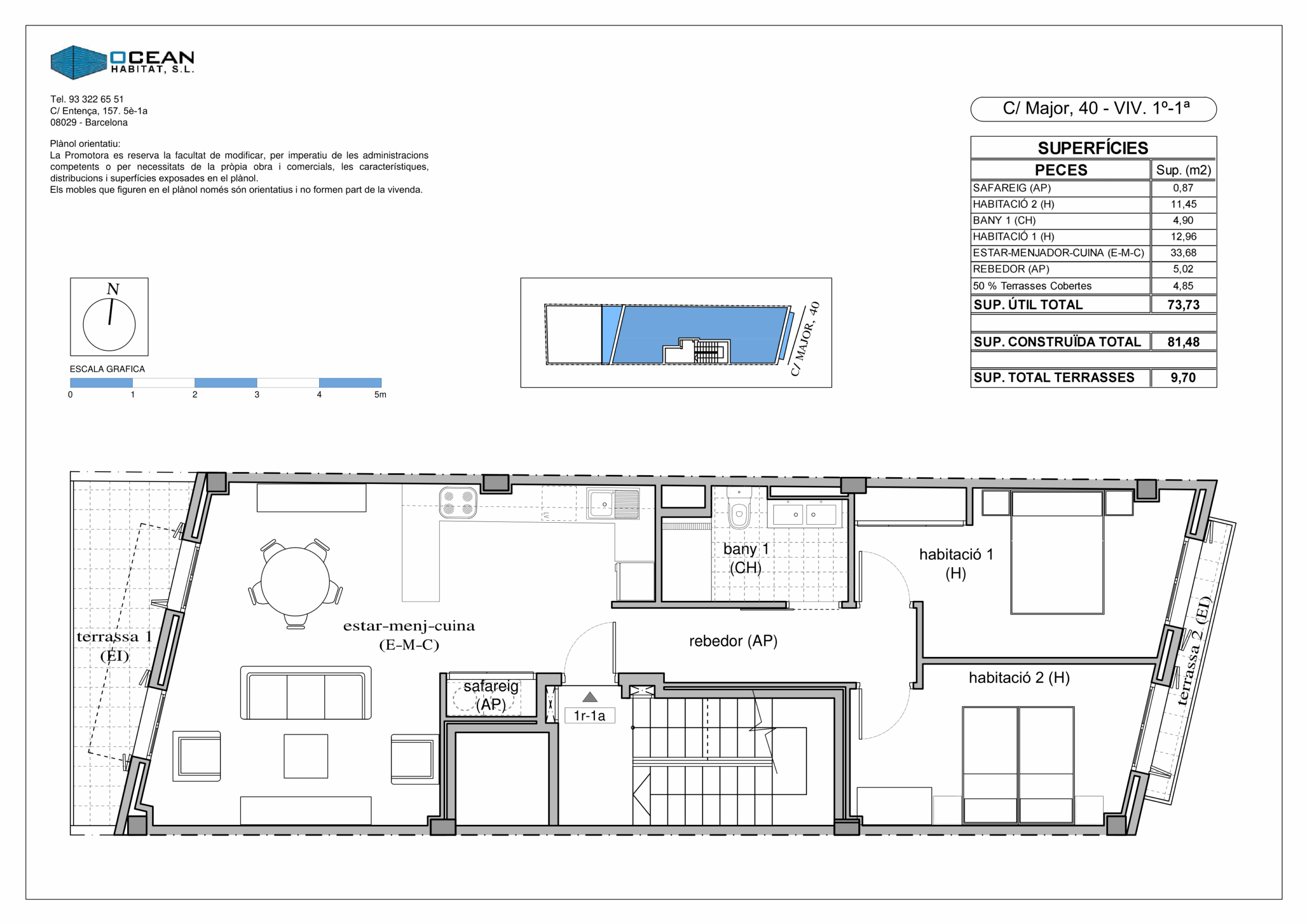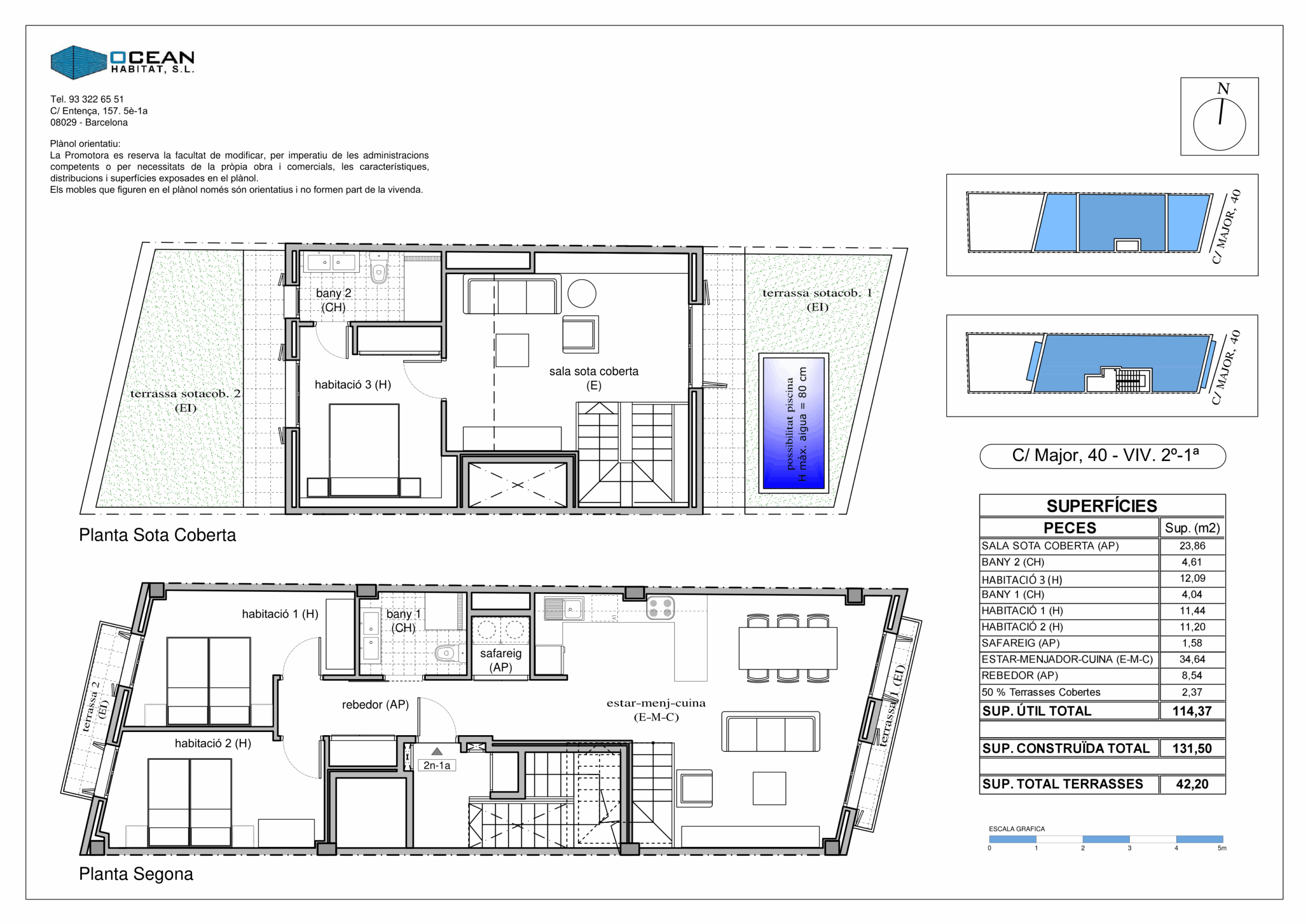 En la promoción existen 3 viviendas, una en planta baja con un gran patio exterior, otra en planta primera y una vivienda tipo dúplex con dos terrazas y piscina. Todas ellas han sido diseñadas con acabados de gran calidad y pensadas para el máximo aprovechamiento del espacio y de la luz natural.